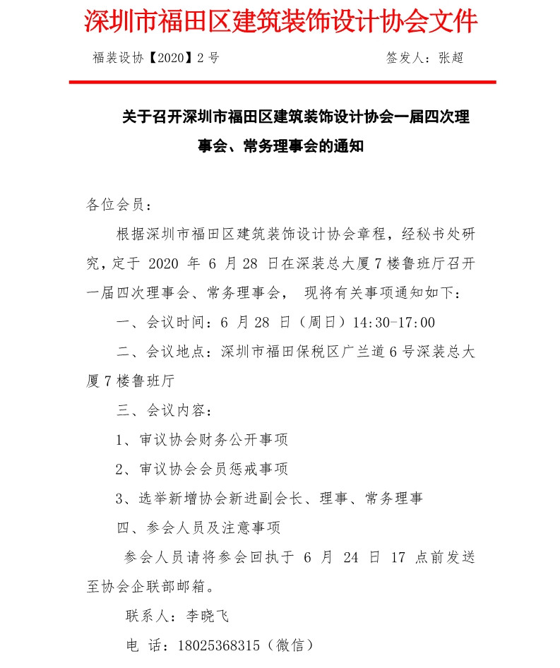 關(guān)于召開深圳市福田區(qū)建筑裝飾設(shè)計(jì)協(xié)會一屆四次理事會、常務(wù)理事會的通知