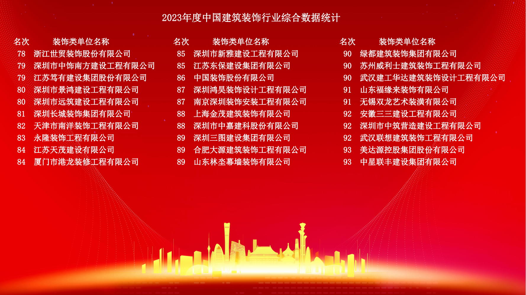 12月10日,2023年度中國建筑裝飾協會行業綜合數據統計正式發布。詳細名單如下:
